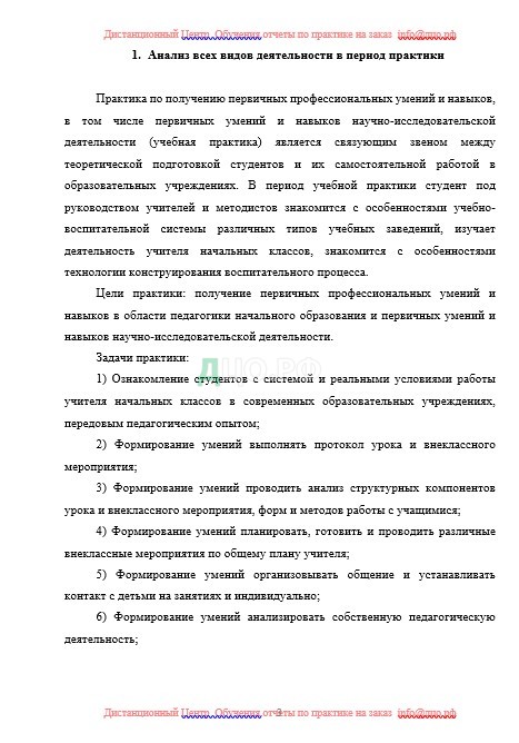 1) Ознакомление студентов с системой и реальными условиями работы учителя начальных классов в современных образовательных учреждениях, передовым педагогическим опытом;