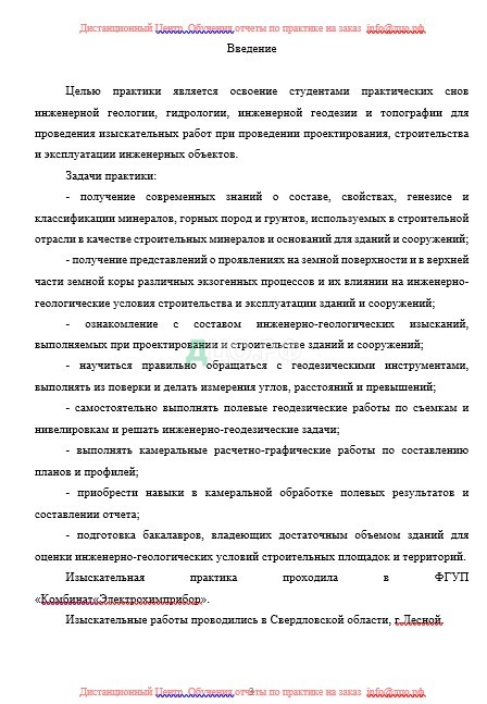 Целью практики является освоение студентами практических снов инженерной геологии, гидрологии, инженерной геодезии и топографии для проведения изыскательных работ при проведении проектирования, строительства и эксплуатации инженерных объектов.