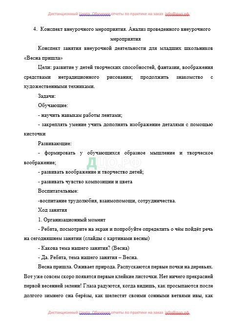 2. Подготовить планы – конспекты провести и проанализировать одно внеклассное мероприятие и уроки.