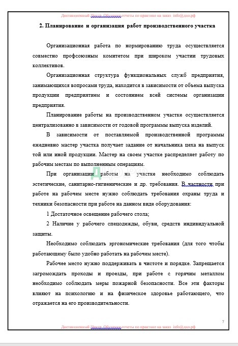 — рассмотреть планирование и организацию работ производственного участка (поста);