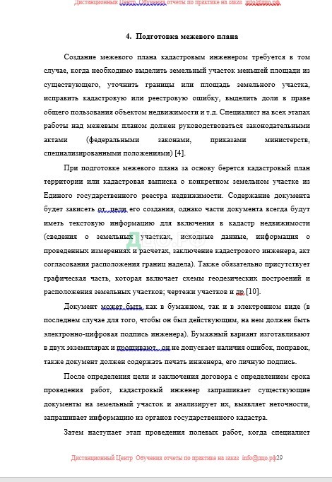 закрепление и развитие практического опыта составления межевого плана с графической и текстовой частями в условиях организации;