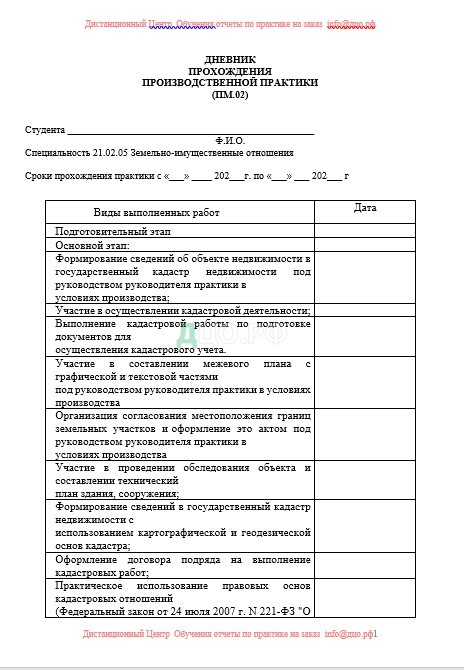 закрепление и развитие практического опыта по оформлению договора подряда на выполнение кадастровых работ;