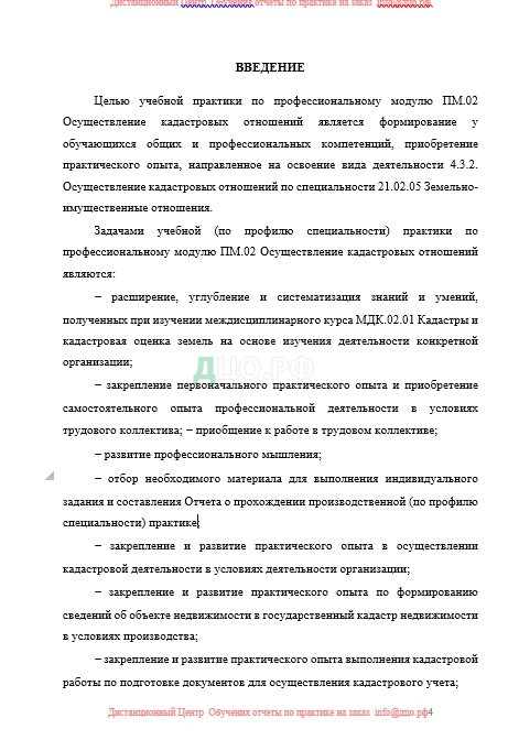 расширение, углубление и систематизация знаний и умений, полученных при изучении междисциплинарного курса МДК.02.01 Кадастры и кадастровая оценка земель на основе изучения деятельности конкретной организации;