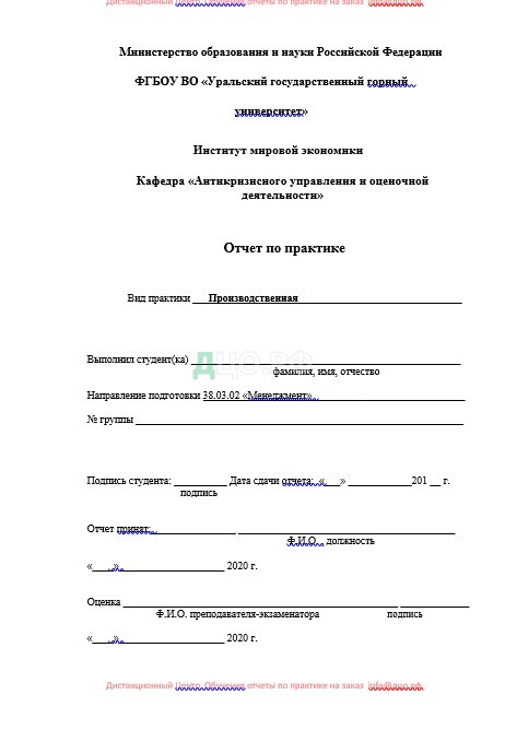 Титульный лист отчета по практике в УрГГУ