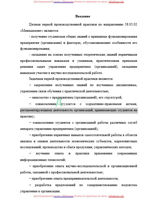 Целями первой производственной практики по направлению 38.03.02 «Менеджмент» являются: