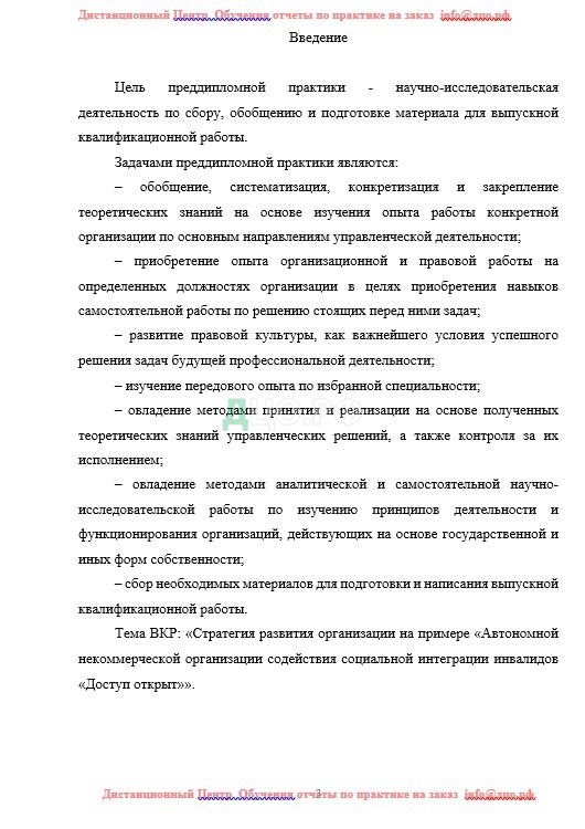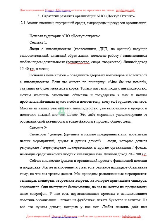 Тема ВКР: «Стратегия развития организации на примере «Автономной некоммерческой организации содействия социальной интеграции инвалидов «Доступ открыт»».
