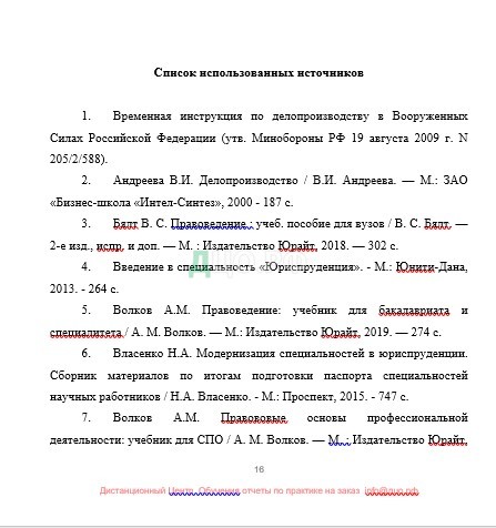 Список литературы отчета по практике в Войсковой части