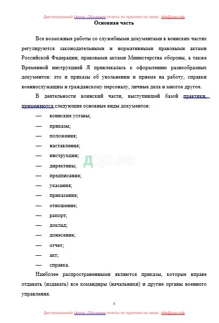 Содержание отчета по практике в Войсковой части