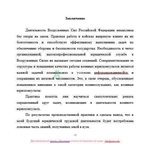 Заключение отчета по практике в Войсковой части