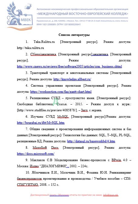 Список литературы отчета по практике в ВЮК