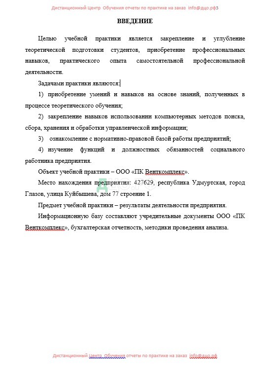 Объект учебной практики – ООО «ПК Венткомплекс».