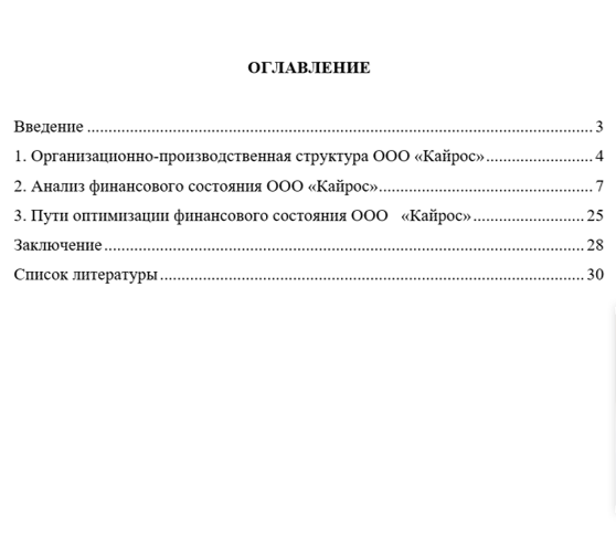 - проведен финансовый анализ организации, сформулировано выводы и дана их экономическая интерпретация;
