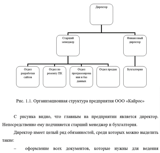 С рисунка видно, что главным на предприятии является директор. Непосредственно ему подчиняется старший менеджер и бухгалтерия.