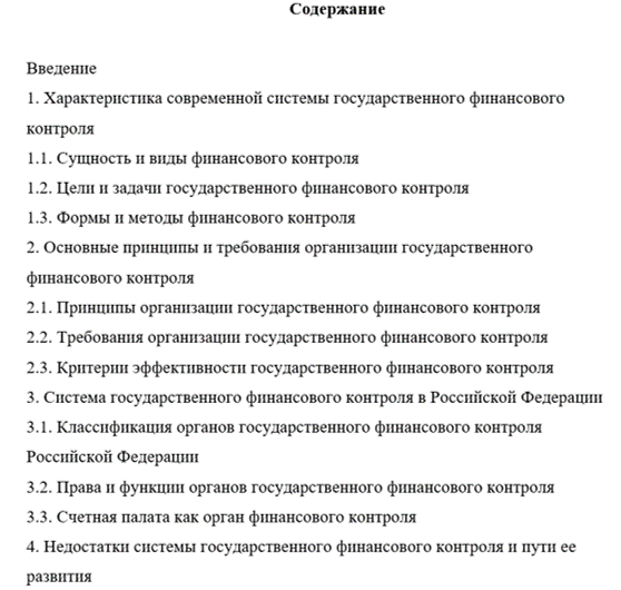 Целью работы является исследование вопросов организации государственного финансового контроля в современных условиях и определение научно-обоснованных рекомендаций по организации его системы в Российской Федерации.