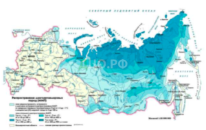 Рисунок 1 — Распространение многолетнемерзлых пород в России