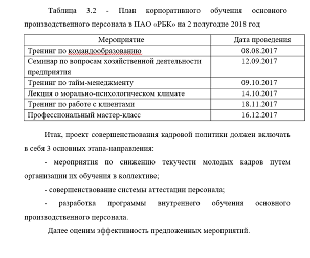 Третья глава представлена разработкой проекта мероприятий по управлению кадровым потенциалом ПАО «РБК».