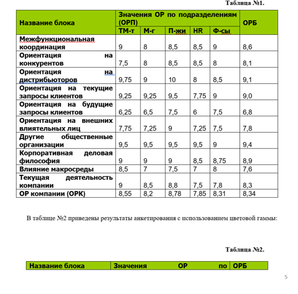 Оценка ориентированности на рынок компании по анкете Ламбена с целью выявления маркетинговых проблем 1 и 2 порядков