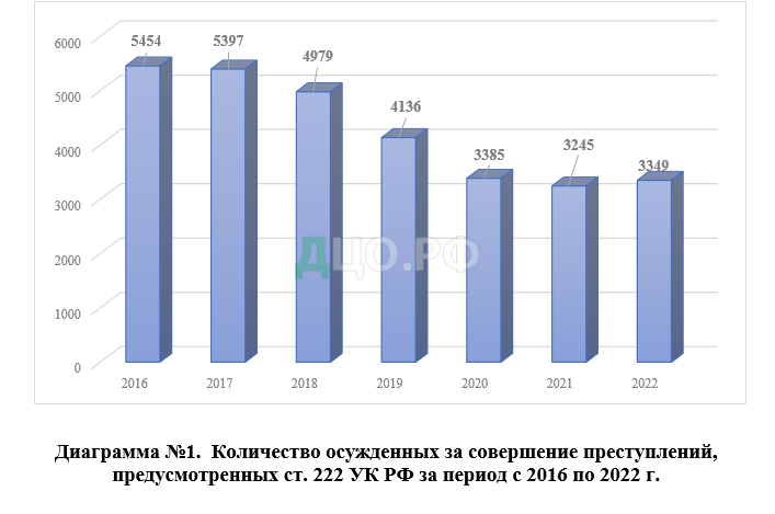 Официальная статистика Судебного департамента Верховного Суда Российской Федерации свидетельствует о том, что число осужденных за совершение преступления, предусмотренного ст. 222 УК РФ составляет 1781 человек за 1-е полугодие 2021 г., 3385 человек за 2020 г., 4136 человека за 2019 г. (см. диаграмму №1).