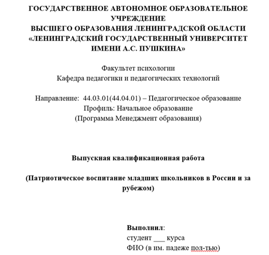 ВУЗ: «ЛЕНИНГРАДСКИЙ ГОСУДАРСТВЕННЫЙ УНИВЕРСИТЕТ ИМЕНИ А.С. ПУШКИНА»
