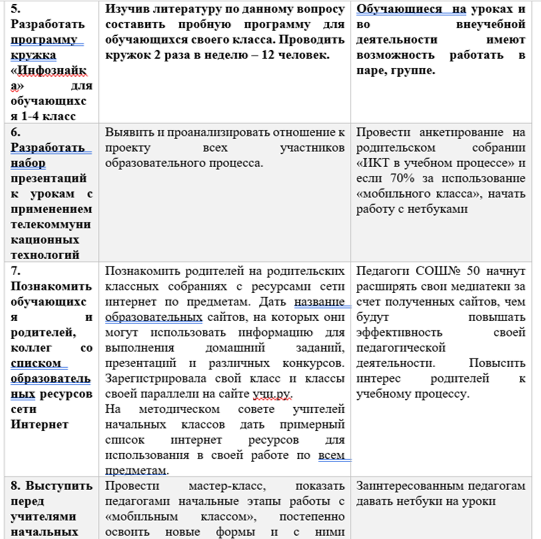 6) Выступить перед учителями начальных классов школы с мастер -классом, возможности работы «мобильного класса»;