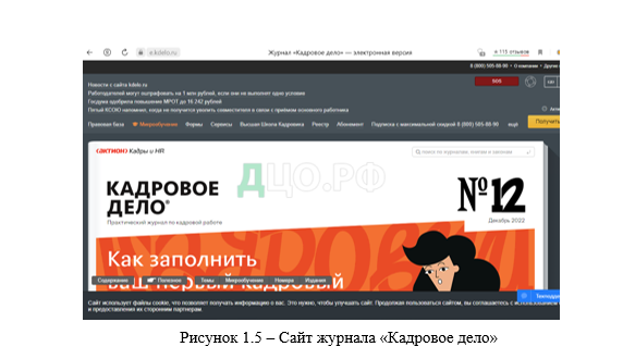 Рисунок 1.6 – Работа сайта журнала «Кадровое дело»