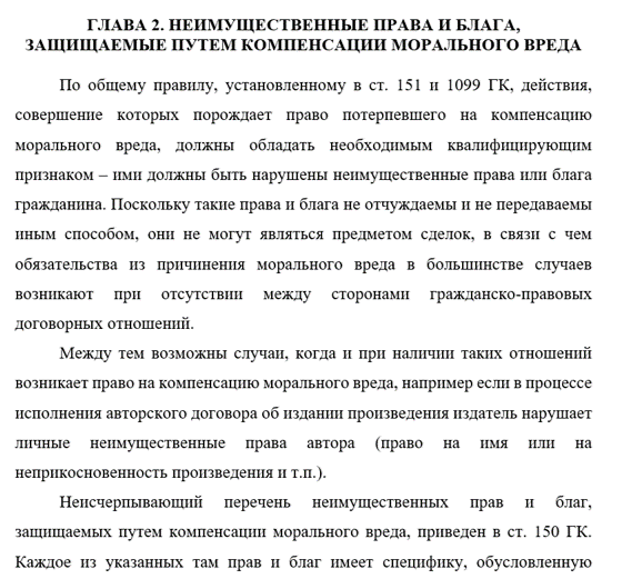 — анализ неимущественного права и блага, защищаемые путем компенсации морального вреда.