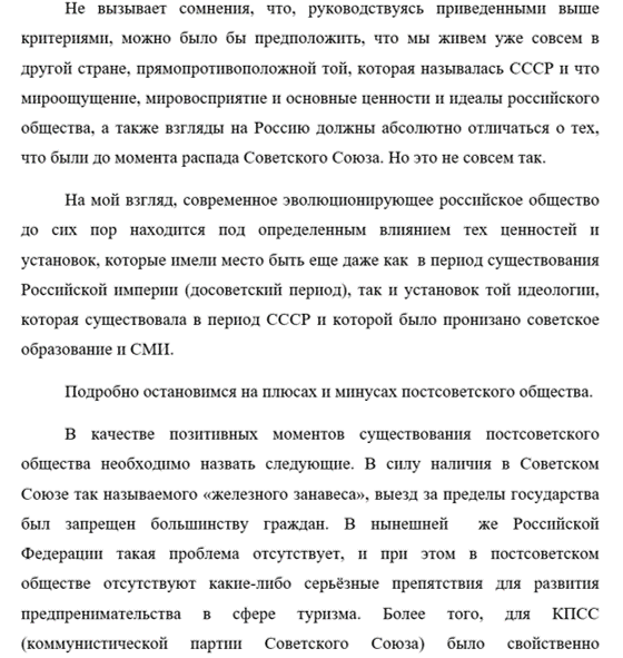 На мой взгляд, современное эволюционирующее российское общество до сих пор находится под определенным влиянием тех ценностей и установок, которые имели место быть еще даже как в период существования Российской империи (досоветский период), так и установок той идеологии, которая существовала в период СССР и которой было пронизано советское образование и СМИ.