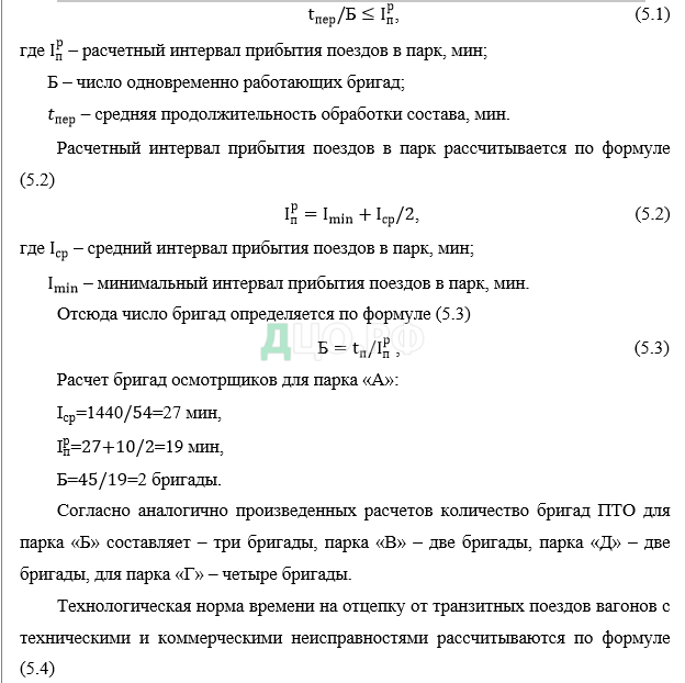 5.1 Расчет количества бригад осмотрщиков в парках станции