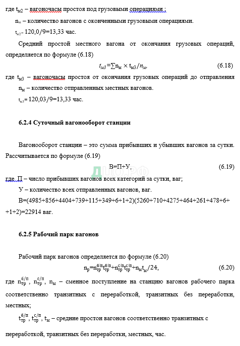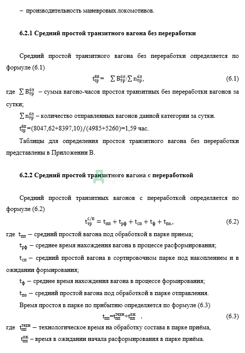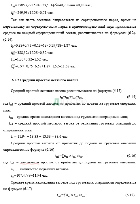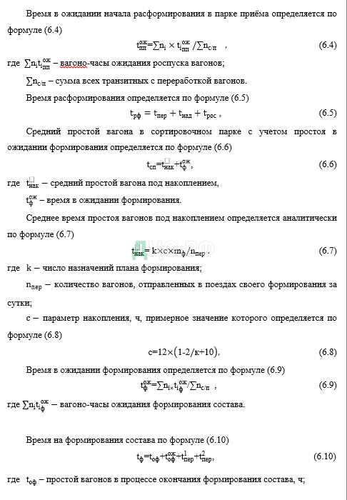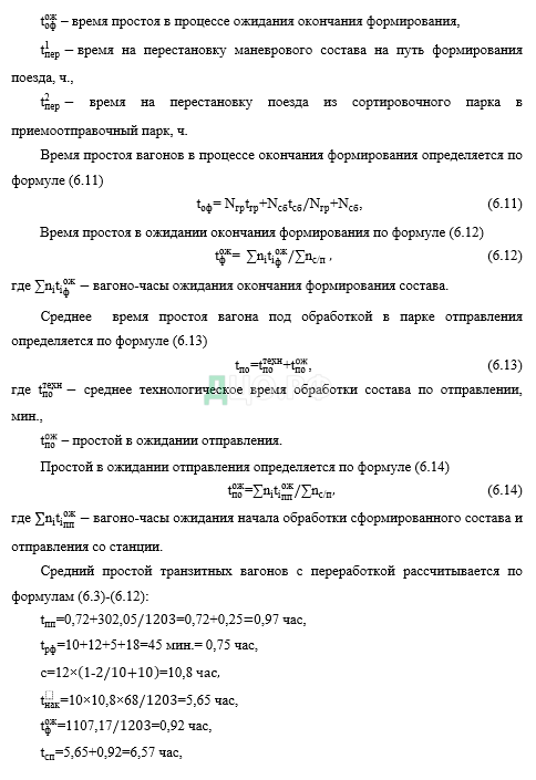 Средний простой транзитного вагона с переработкой по второму варианту рассчитывается по формулам шестого раздела (6.3)-(6.14):