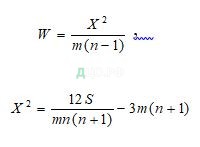 Произведем оценку степени согласованности мнений экспертов. Данная оценка свидетельствует о значимости данных показателей и производится путем вычисления коэффициента конкордации (согласования) по формуле (1) и (2):