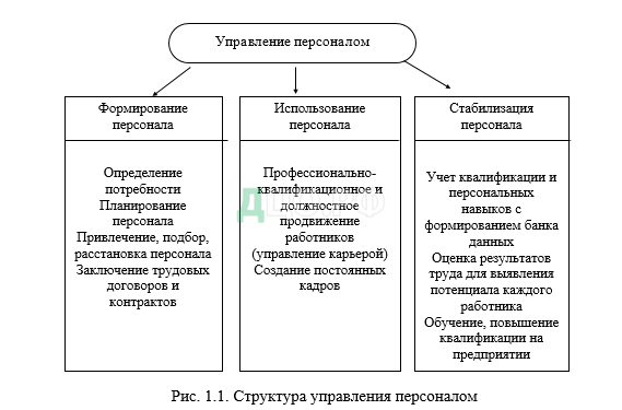 Рассматривая процесс управления персоналом как целостную систему, можно выделить основные элементы, реализующие следующие функции: