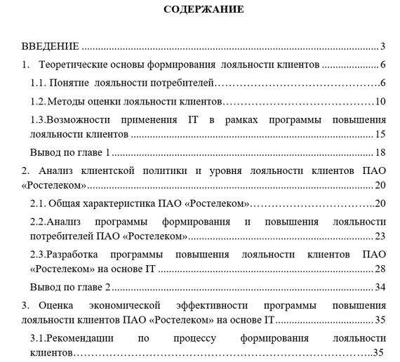 Вторая глава содержит анализ клиентской политики и определение уровня лояльности клиентов ПАО «Ростелеком» по представленной в главе 1 методике. Так же в рамках второй главы предпринята попытка разработать программу повышения лояльности клиентов ПАО «Ростелеком» на основе IT.