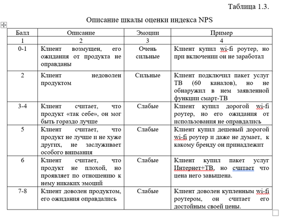 Для измерения лояльности используется ответ на ключевой вопрос: «С какой вероятностью Вы порекомендуете продукт N вашим друзьям и знакомым?» Вероятность оценивается по шкале от 0 до 10, где 0 — наименьшая вероятность рекомендации, а 10 — наибольшая. В зависимости от того, какой балл поставил клиент, ему присваивается класс (см. таблицу 1.2.).