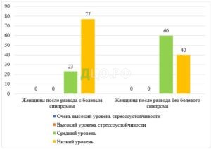 Ни одна из исследуемых женщин после развода с установленным по МКБ диагнозом «болевой синдром» не показала высокий или очень высокий уровень стрессоустойчивости, что является негативной тенденцией.