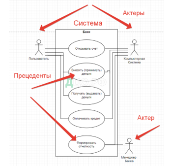 Актер запускает Прецеденты — взаимодействует с системой. А Система — взаимодействует с Актером – реагируя на его запрос.