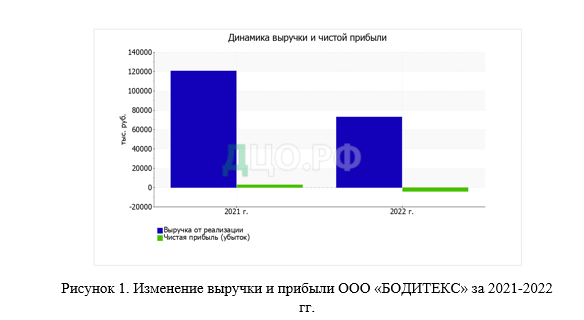 Таблица 1. Финансовые показатели ООО «Бодитекс» за 2021-2022 гг.