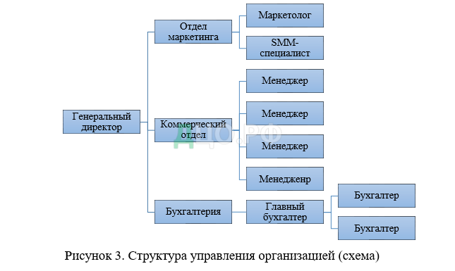 В процессе ознакомления со спецификой работы компании в ее организационной структуре выделяется 3 структурных подразделения: коммерческий отдел, бухгалтерия, отдел маркетинга. В настоящий момент в штате ООО «БОДИТЕКС» работают 10 человек. Структуру управления в организации можно увидеть на рисунке 3.