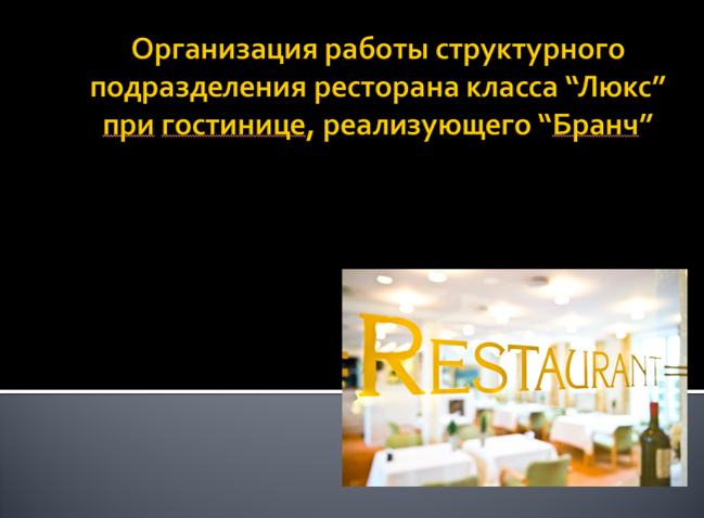 Тема: Организация работы структурного подразделения ресторана класса “Люкс” при гостинице, реализующего “Бранч”