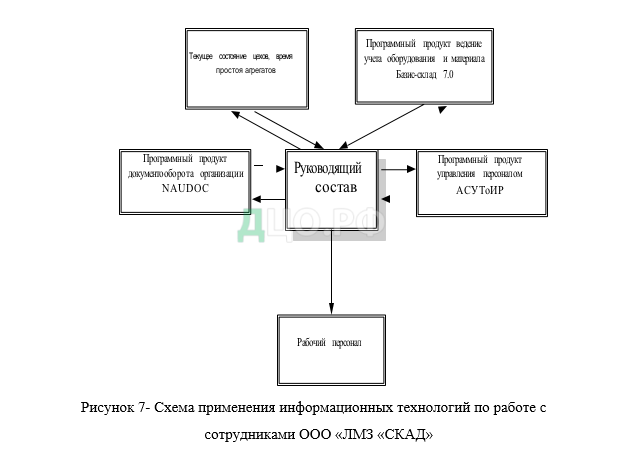 Их применение предоставляет возможность осуществления документооборота ООО «ЛМЗ «СКАД». На рисунке 7, представлены особенности использования указанных программных продуктов, которые позволяют руководству компании осуществлять анализ деятельности сотрудников и обеспечивать процесс производства необходимым оборудованием.
