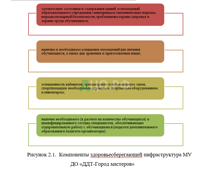 Здоровьесберегающая инфраструктура МУ ДО «ДДТ-Город мастеров» включает следующие компоненты (см. рисунок 2.1).