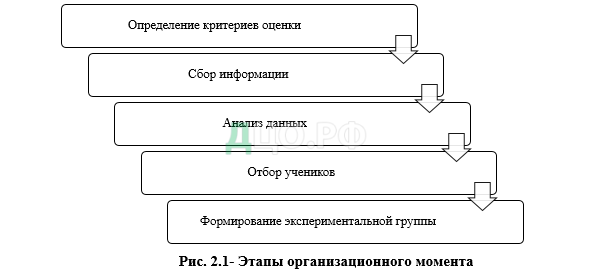 Для отбора учеников при проведения экспериментальной работы были выполненя следующие этапы (рис. 2.1).