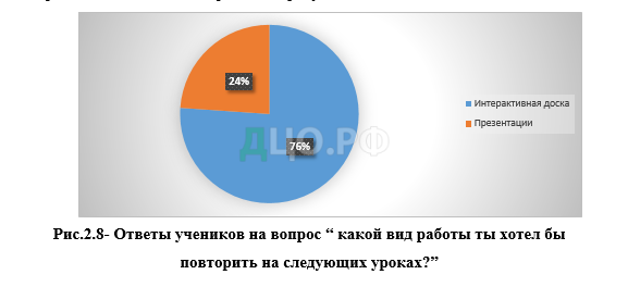 Согласно результатам опроса, 76% учащихся захотели и в последуующих уроках выполнять задания с помощью интерактивной доски.