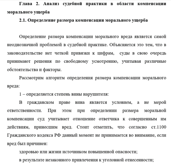 1 – изучены понятие и источники правовой базы по регулированию морального ущерба;