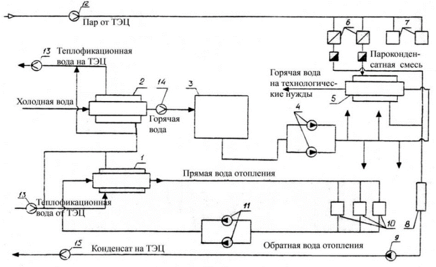 Для обеспечения теплом г. Анадыря используются две нитки тепловой сети. Для обеспечения номинального расхода сетевой воды установлены две группы сетевых насосов суммарной производительностью 1500 т/ч. С целью компенсации утечек сетевой воды на ГМ ТЭЦ смонтирована схема умягчения и деаэрации подпиточной воды производительностью 38 т/ч.