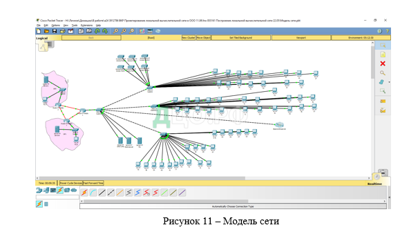 Для моделирования ЛВС на рынке представлены многочисленные программные средства такие как Packet Tracer, NetCrunch, Dynamips, NetCracker. При выполнении этого проекта была использована программа Packet Tracer. Модель сети представлена на рисунке 11.