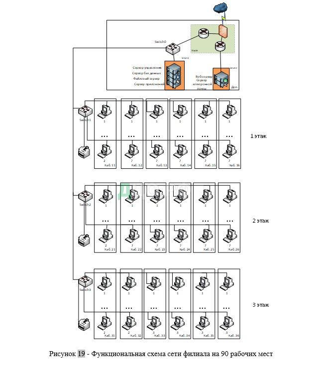 Рисунок 17 — Функциональная схема сети филиала на 20 рабочих мест