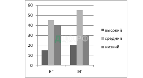 В экспериментальной группе высокий уровень обнаружен у 4 детей (20%), средний уровень агрессивности выявили 10 детей (50%), низкий уровень обнаружен у 6 детей (30%).