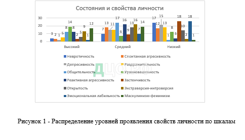 Общая характеристика распределения уровней проявления свойств личности, по шкалам представлена на рисунке 1.