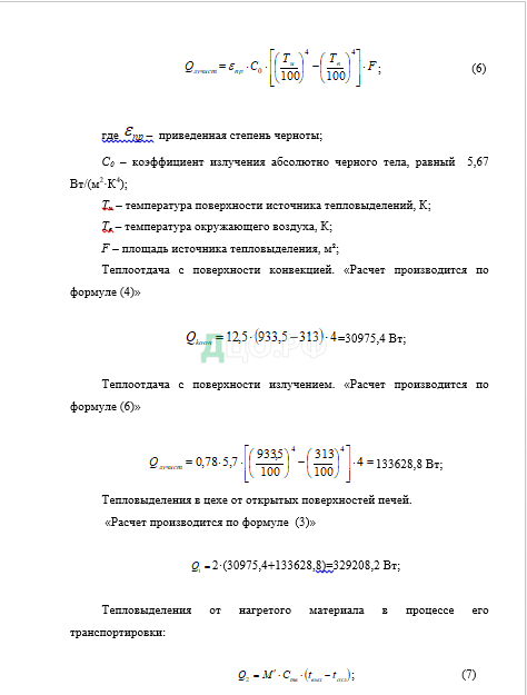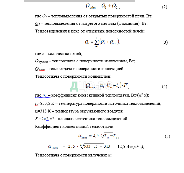 Для выбора системы обеспечения установленных параметров воздушной среды необходимо знать суммарные тепловыделения в единицу времени Qобщ, расчет которых производится по формуле: