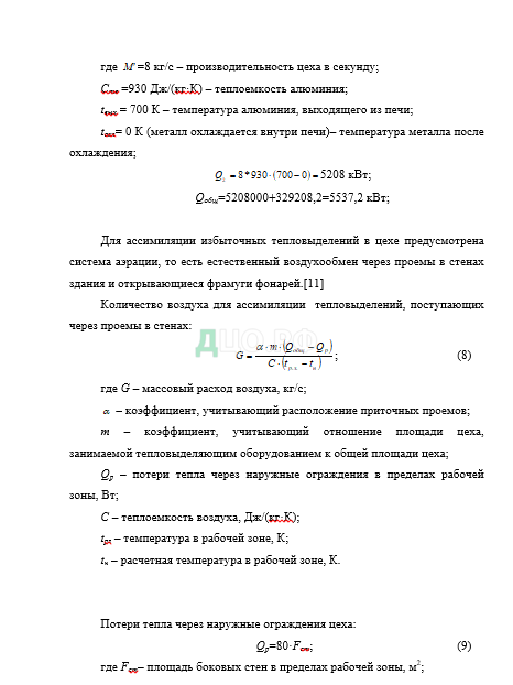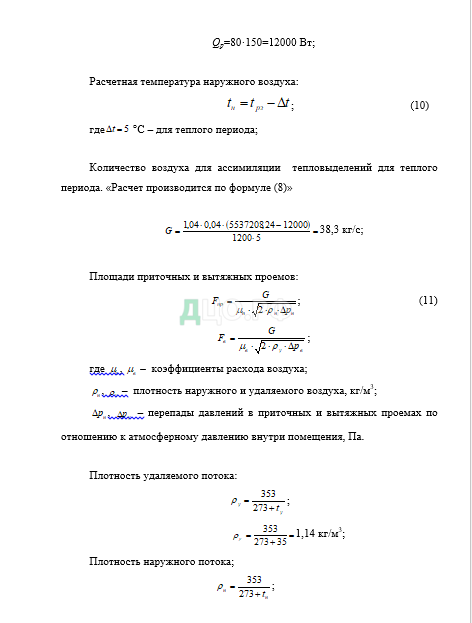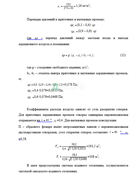 Для расчета аэрации плавильного цеха, то есть количества воздуха необходимого для ассимиляции избыточных тепловыделений, необходимо рассчитать площадь приточных и вытяжных проемов.